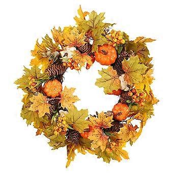 Autumn Maple Leaf Pumpkin Wreaths Thanksgiving Halloween Door Garland Decors