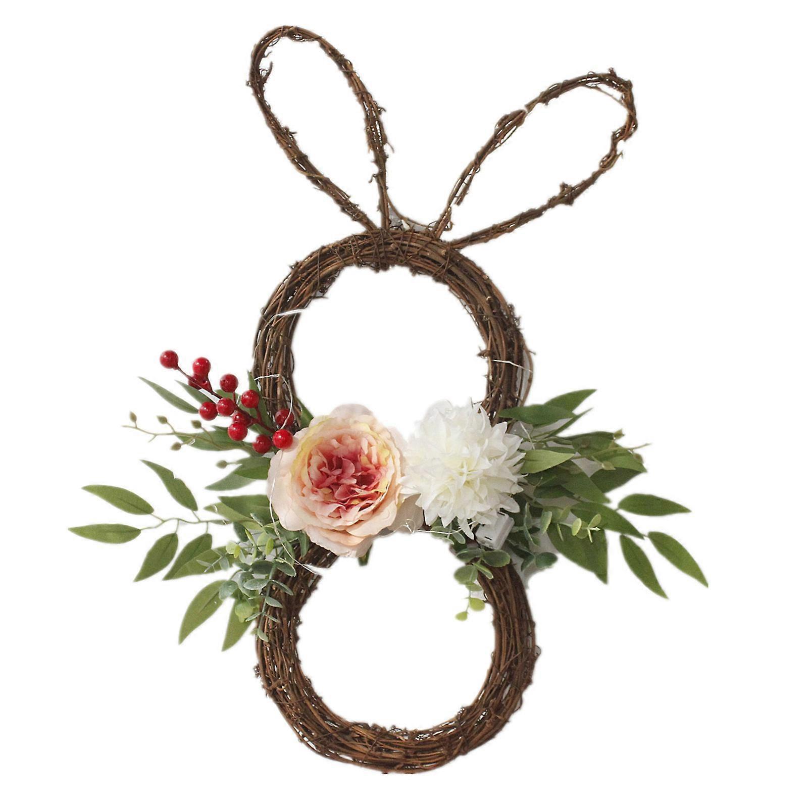 Spring Wreath Cute Easter Bunny Wreath with Flower Green Leaves Garland for Home