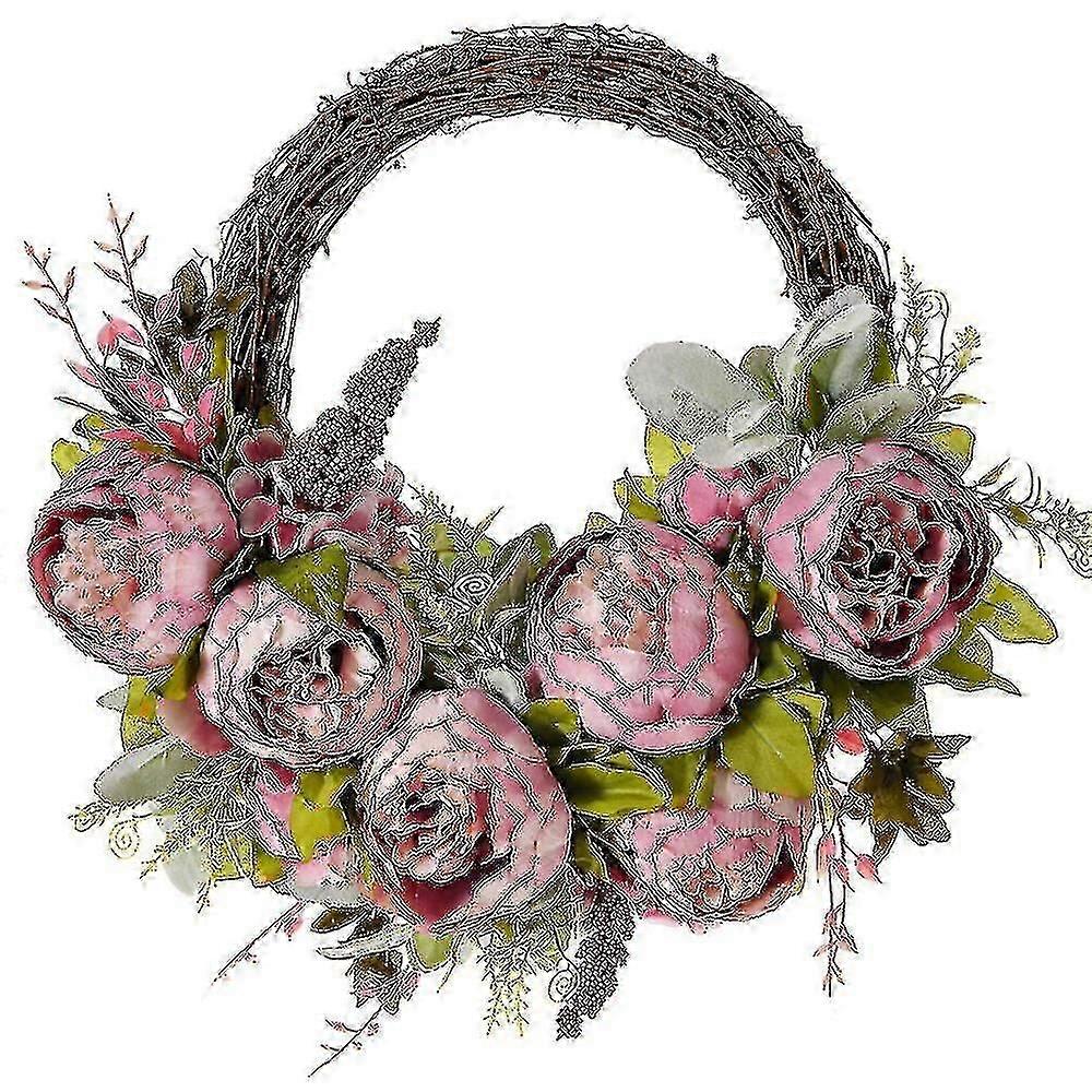 New Artificial Peony Wreath Peony Flower Wreath Spring Summer Wreaths Grapevine Wreath Green Leaves