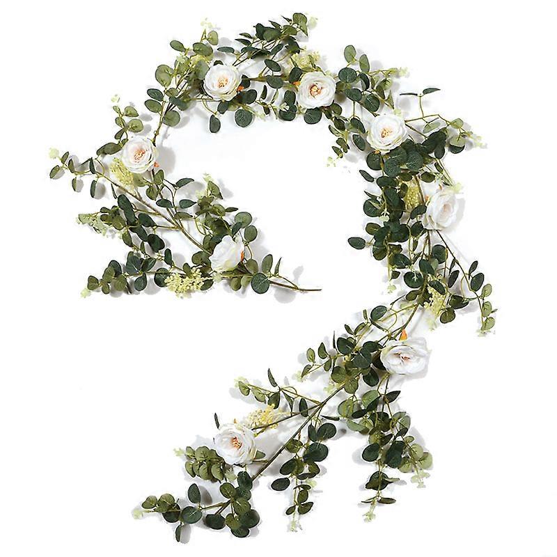 Artificial Flower Eucalyptus Garland With Camellias 6Ft Fake Hanging Flower Vine For Wedding Garden Party Table Decor