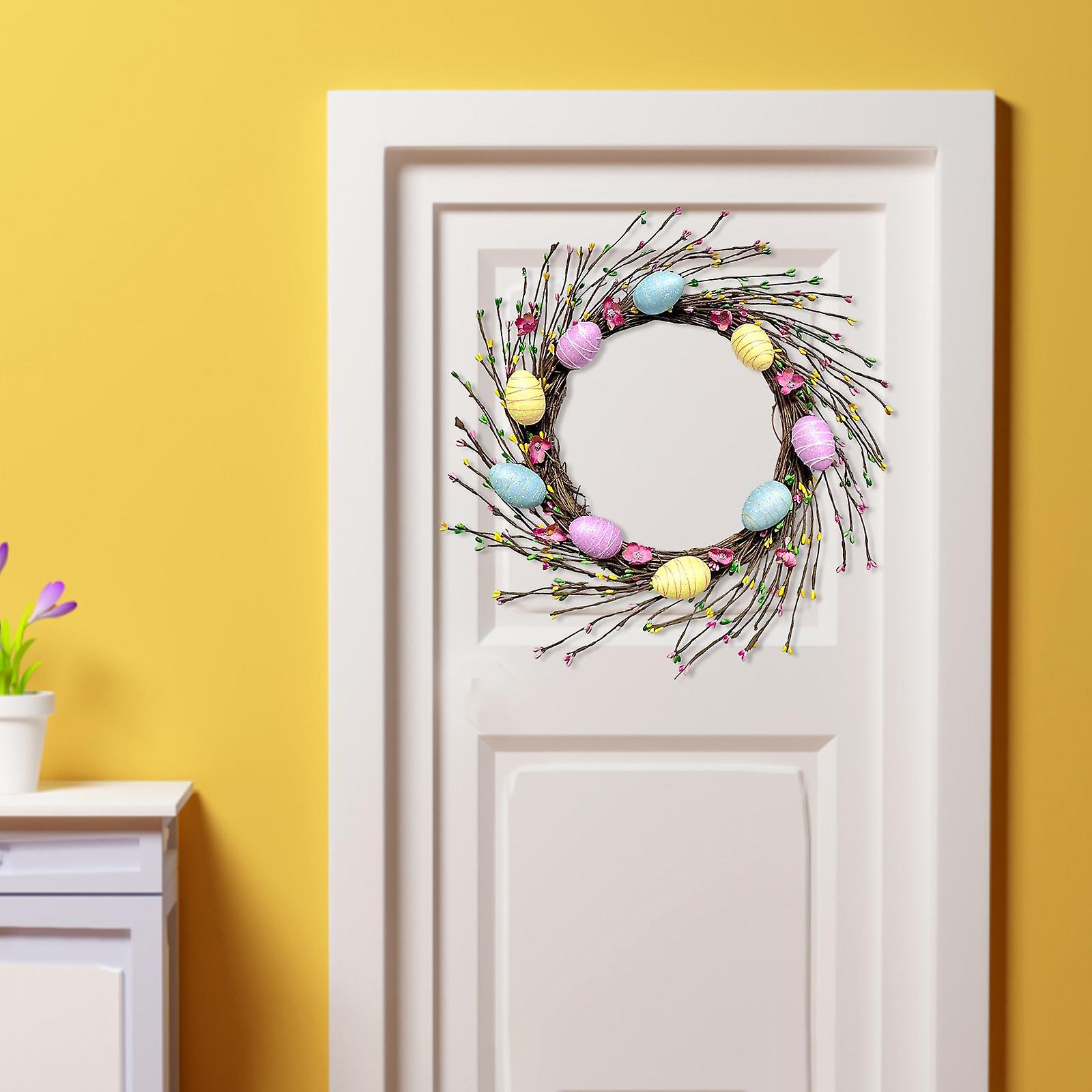 Easter Egg Wreath Artificial Easter Wreaths Hanging Garlands 45cm Artificial Flower Garland for Front Door Spring Patio Porch