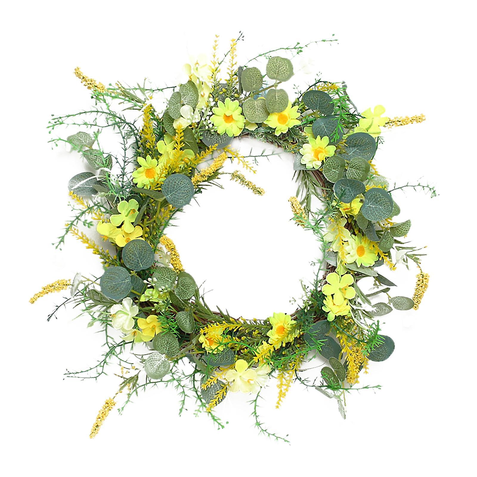 Fake Daisy Wreath Floral Garland 13.8 Inches for Front Door Wedding Garden
