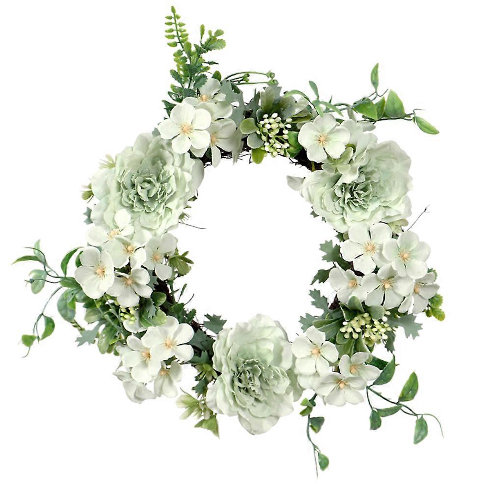 Faux Camellia Hanging Garland Decorative Wreath for Home, Door, Wall – Green & White Floral Ornament for Weddings, Festivals, and Parties – Easy to