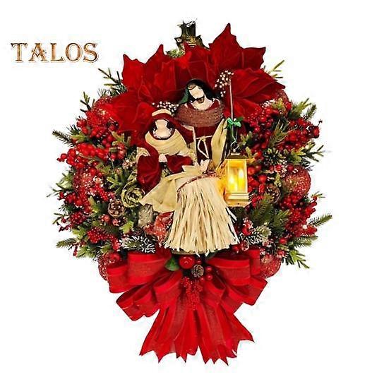 Nativity Elegance: Exquisite resin Holy Family sculpture adorns the lower wreath section, capturing the essence of Christmas. Every detail reveres Jesus, embodying peace, love, and the true spirit of the season.