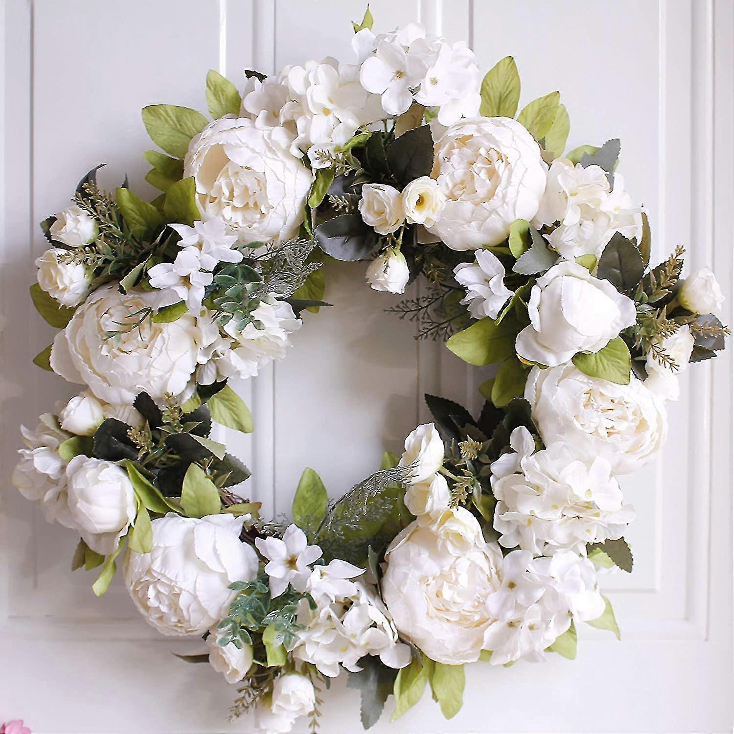 Wreath - Peony Flower Wreath, Floral Wreath, Door Wreaths For Front Door, 17-Inches, White