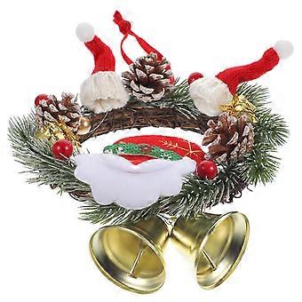 Xmas Wreath Artificial Rattan Garland for Decor 3Pcs Bell Pendant Hanging Set