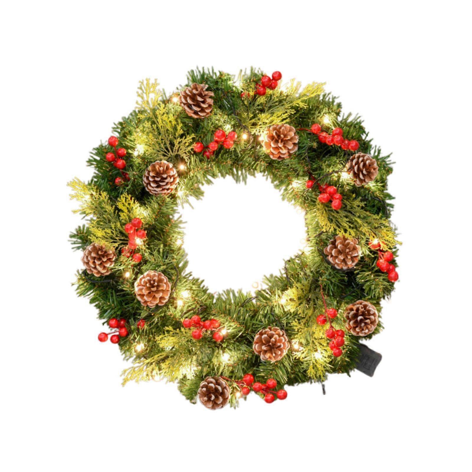 Christmas Wreath with LED Lights Holiday Garland for Front Door Outdoor Wall 30cm
