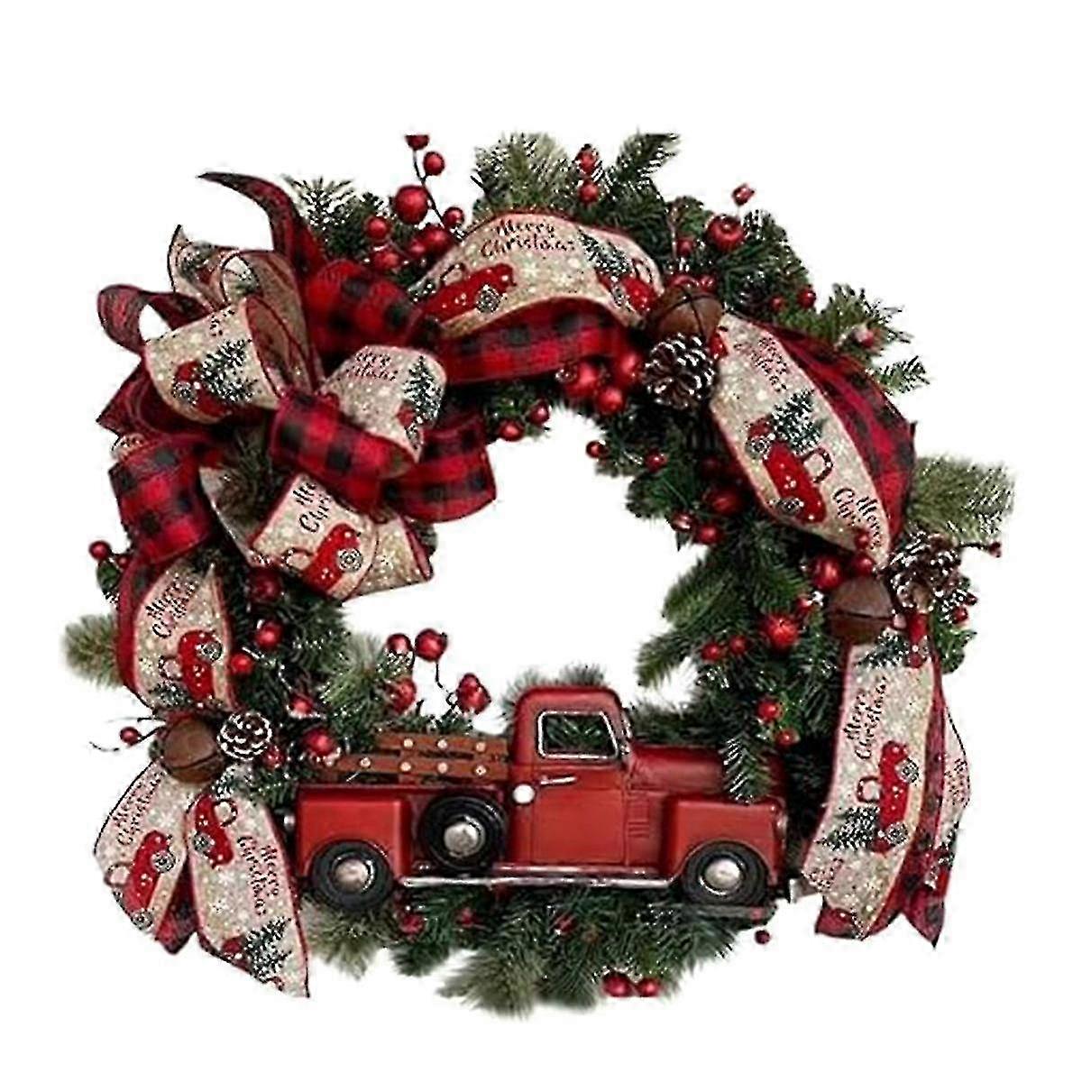 Christmas Wreath with Red Truck Rustic Style Front Door Decoration