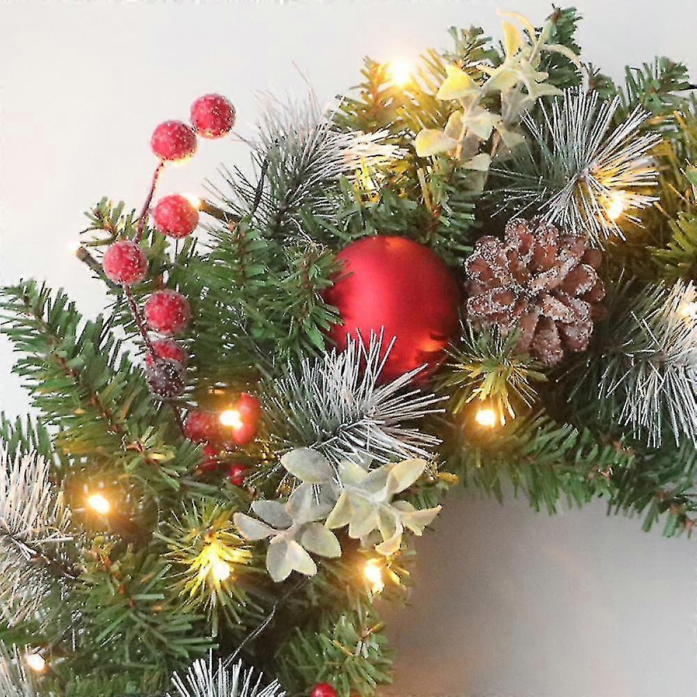 Pre-lit Christmas Wreath With Lights Artificial Christmas Wreath Decorated With Pine Cones Berry Clusters Frosted Branches Ball Ornaments Christm