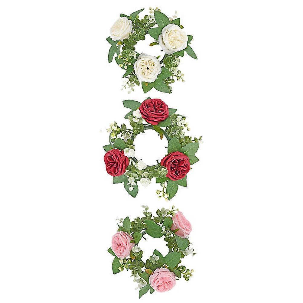 Candle Ring Wreath With Artificial Roses For Birthday Party Decor Size 20X20X8CM 6 Pcs