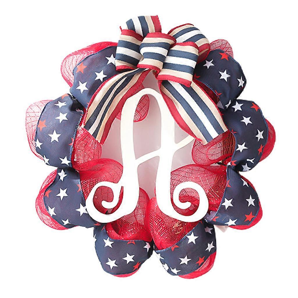 Independence Day Wreath America Flag Net Yarn Garland Patriotic Veterans Day Wreath for Front Door Multicolor