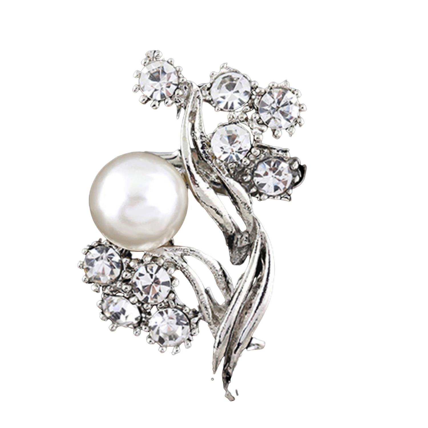 New Bridal Bouquet Rhinestone Crystal Brooch Pin Silver Pearl Brooches Flower BoSaiD