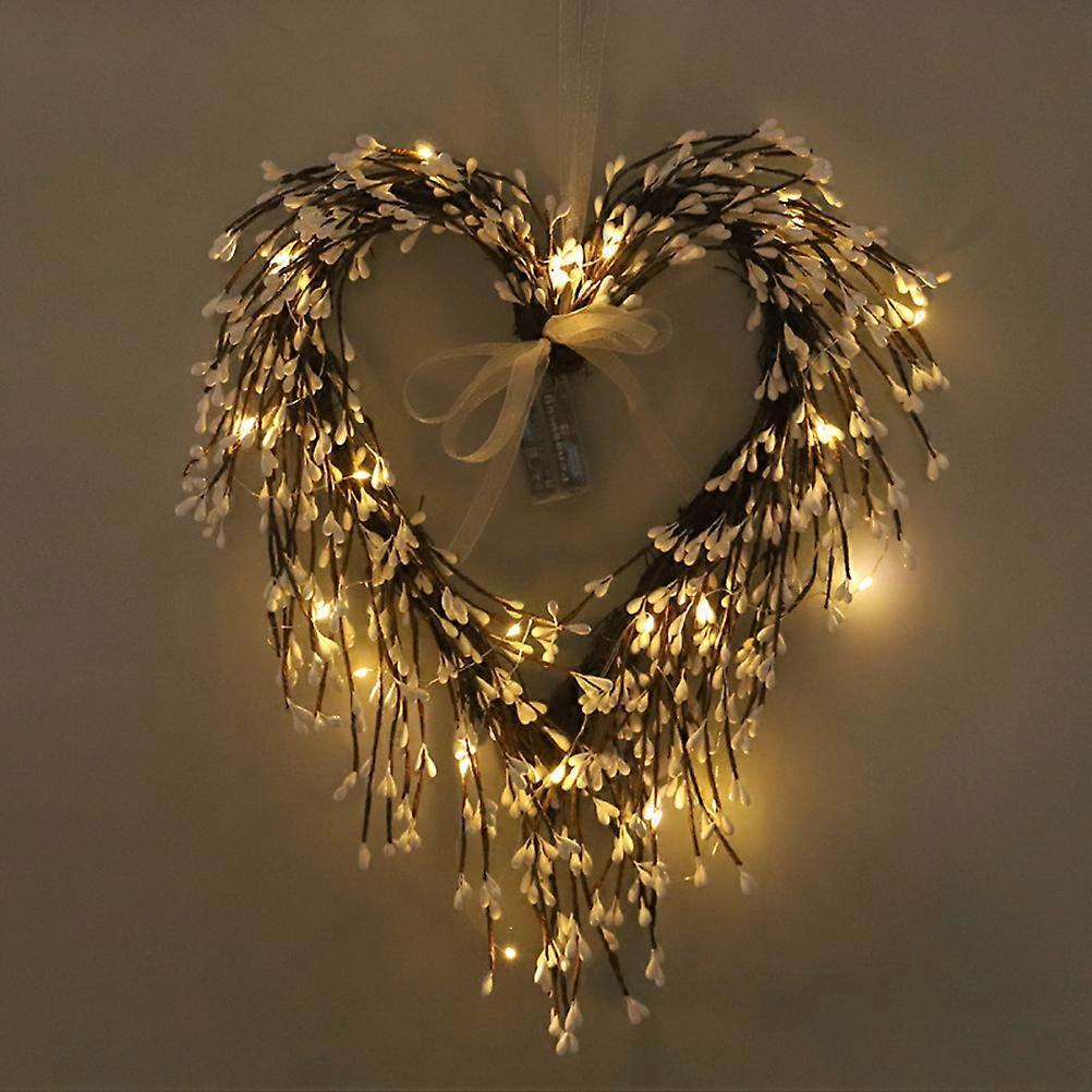 Valentine's Day Heart Wreath with Twigs and Light for Living Room Wall Staircase Door Decoration Wreath
