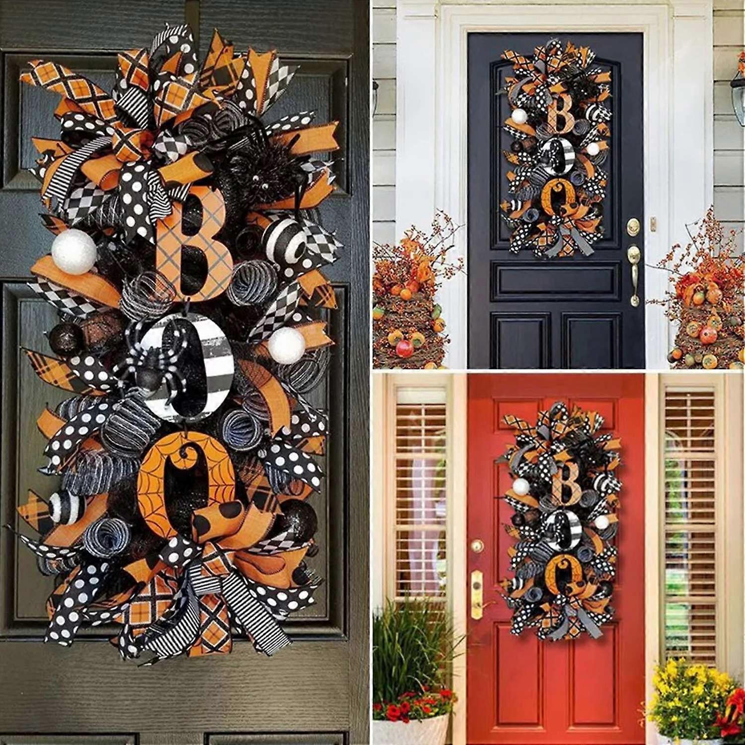 Halloween Wreath Pumpkin BOO Design for Front Door Decoration