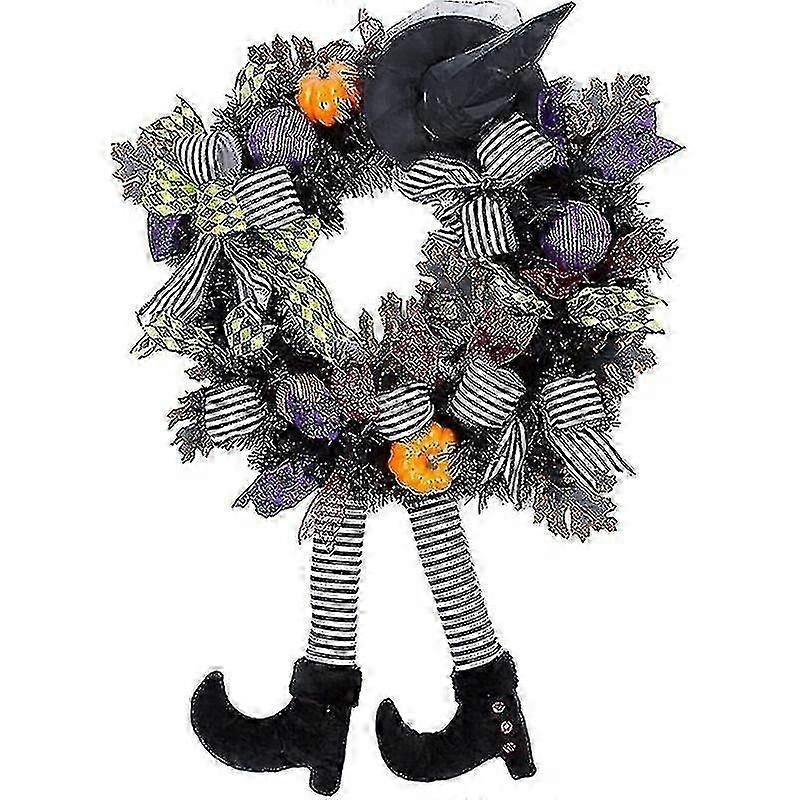 Decorative Halloween Wreath with Pumpkin and Maple Leaf Elements