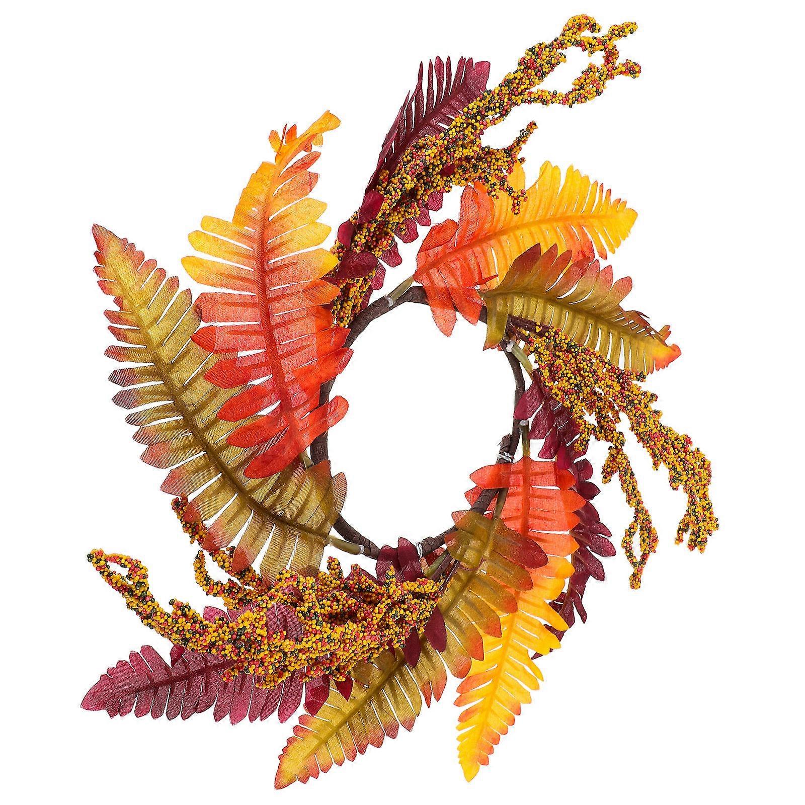 Decorative 4Pcs Candle Ring Wreath For Fall Party Featuring Artificial Leaves Suitable For Thanksgiving Day Indoor Table Decoration