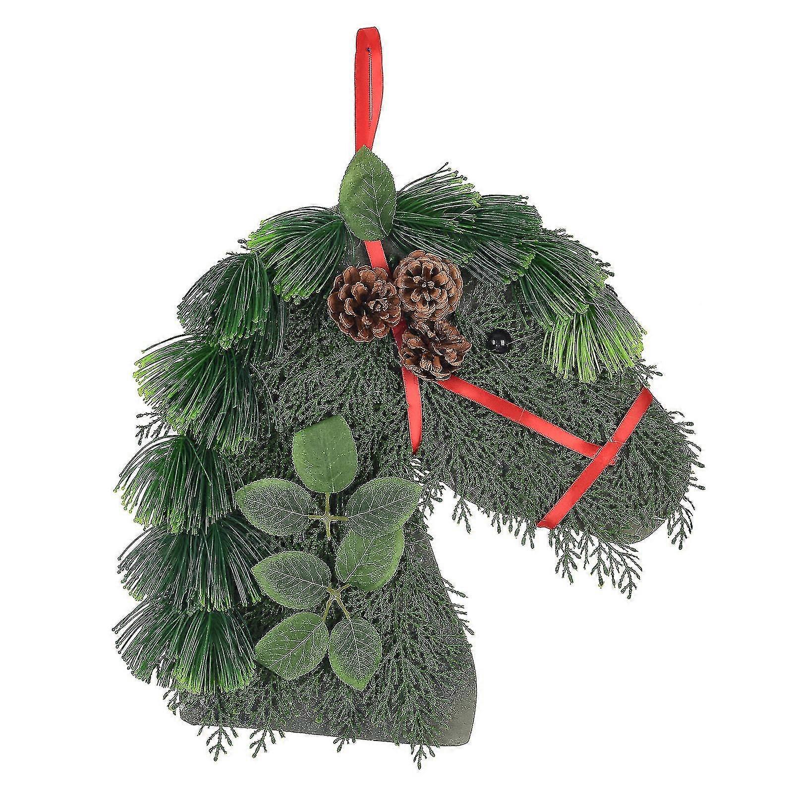 Horse Head Christmas Wreath Artificial Branch Leaf Wreath Front Door, Seasonal Handmade Wreath Wall Door Hanging Christmas Wreath Home Outdoor Garden