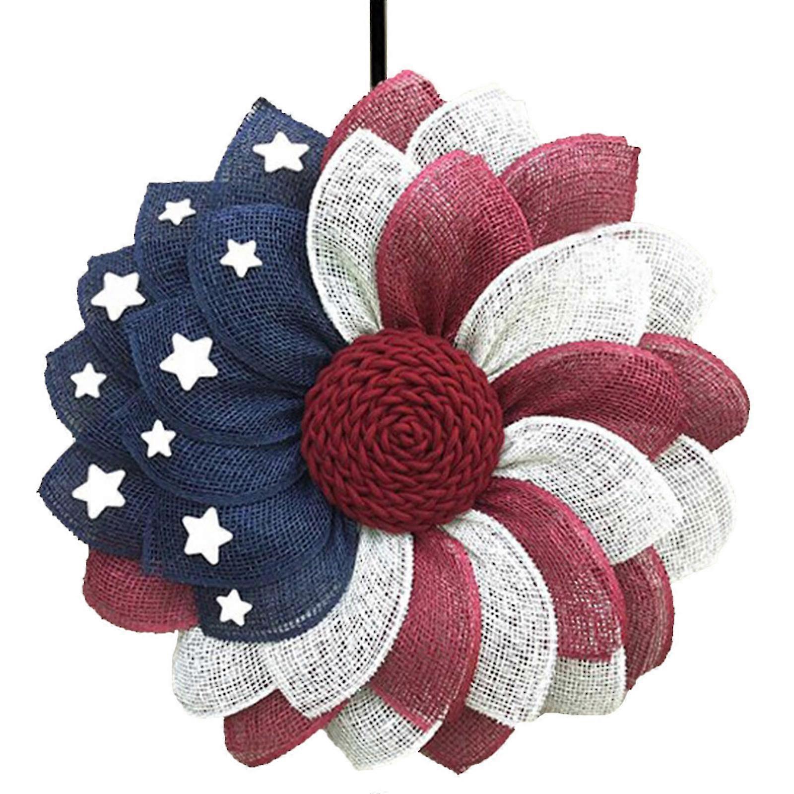 Patriotic Wreath Independence Day Wreath American Flag Theme Handmade Flower Shaped Wreath