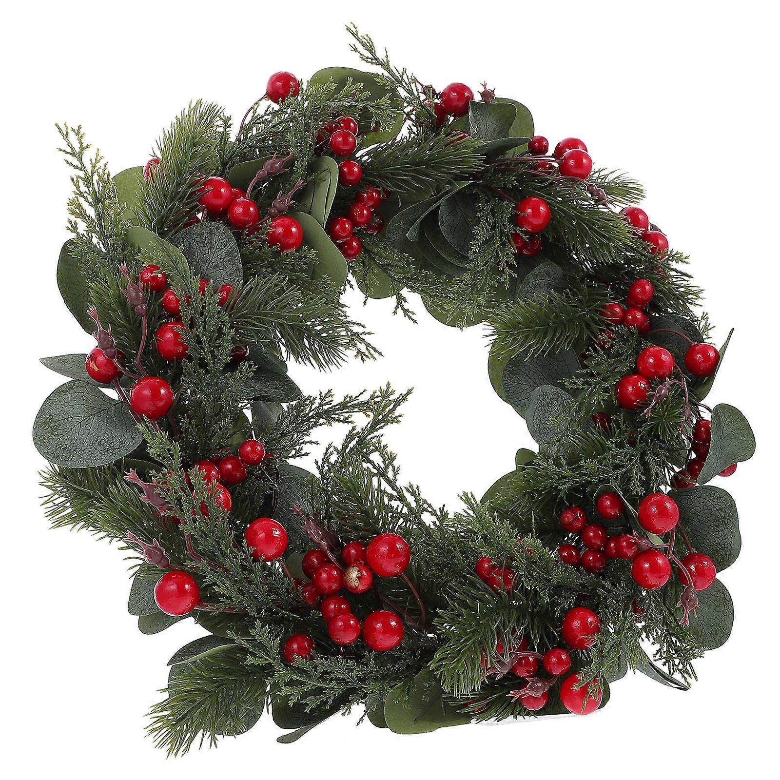 Red Berry Wreath Artificial Eucalyptus Leaves Berry Pendant for Decor 1Pcs