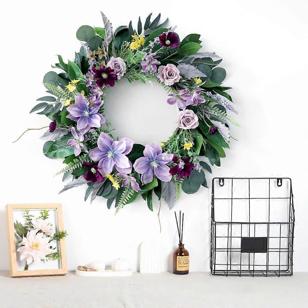 Features: This artificial wreath is full of artificial leaf and realistic simulated flower. Great for your front door, wall, hallway, window, farmhouses, garden, indoor and outdoor decoration. Our artificial leaves flower wreath crafted with polyester and pp, realistic simulation leaf and artificial flower would not fall and fade. Do not need water. Diameter 21.65x21.65inch. Proper size for front door, wall, window, porches, hallway, garden. After prolonged use, wipe with dry cloth. Please avoid rain snow and direct sunlight. This realistic artificial flower wreath, great for various season and holiday, used as front door wreath, Summer Spring wreath, Valentines wreath, Christmas wreath, Wedding wreath. Bring bright color to your room. Easily add other decorations to make wreath you want, making it unique decorations for indoor and outdoor. widely used for Christmas, Valentinse, Wedding, anniversary, and other festival occasion. Specifications: Color: Green Purpler Pinkness Component: Cloth; Polyester; Size: Approximately. 55x55.0cm/21.65x21.65in Weight: Approximately. 330g Note: 1.Please allow 0-1cm error due to manual measurement. make sure you donot mind before bid. 2.Due to difference between different monitors, the picture may not reflect the actual color Package includes: 1Piece Artificial Flower Leaves Wreath