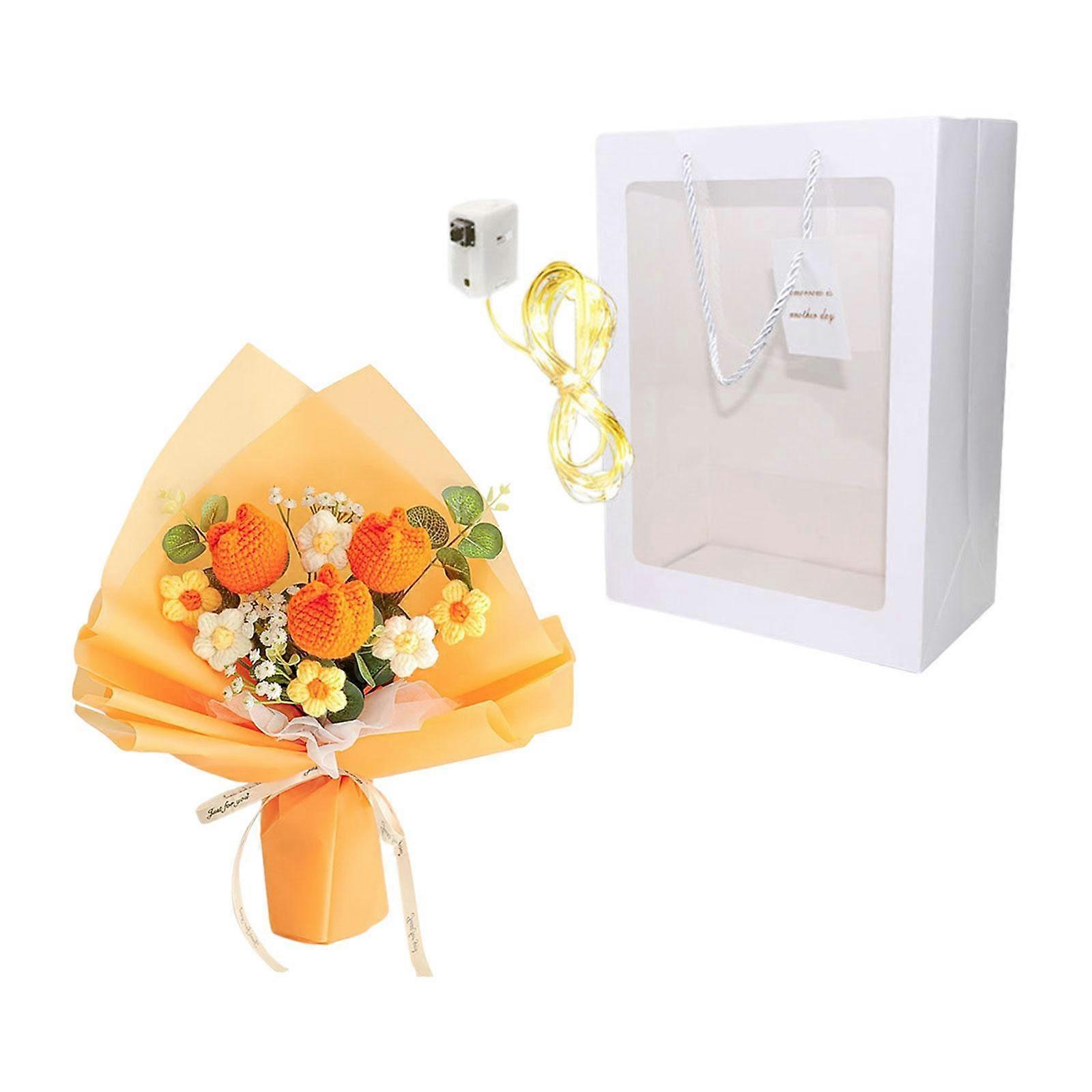 Crochet Flower Bouquet with Lights Festival Party Knitted Artificial Flowers Orange