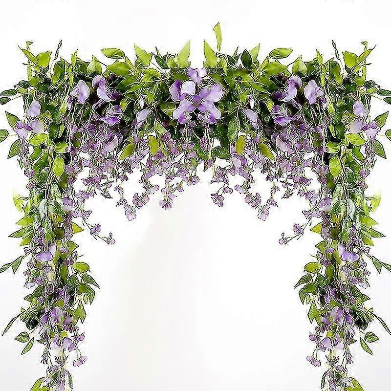 Purple Blue-5 Piece Artificial Wisteria Flower Garland, 5 Pieces Total 33 Feet Fake Wisteria Vine Silk Flower Hanging for Home 25-26