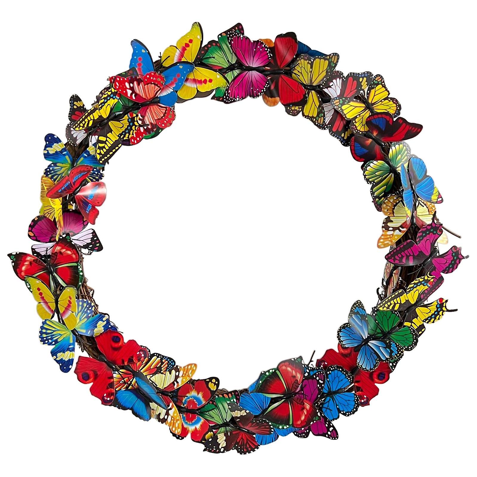 Round Butterfly Wreath for Front Door Ornament Garland Wall Holiday Outdoor