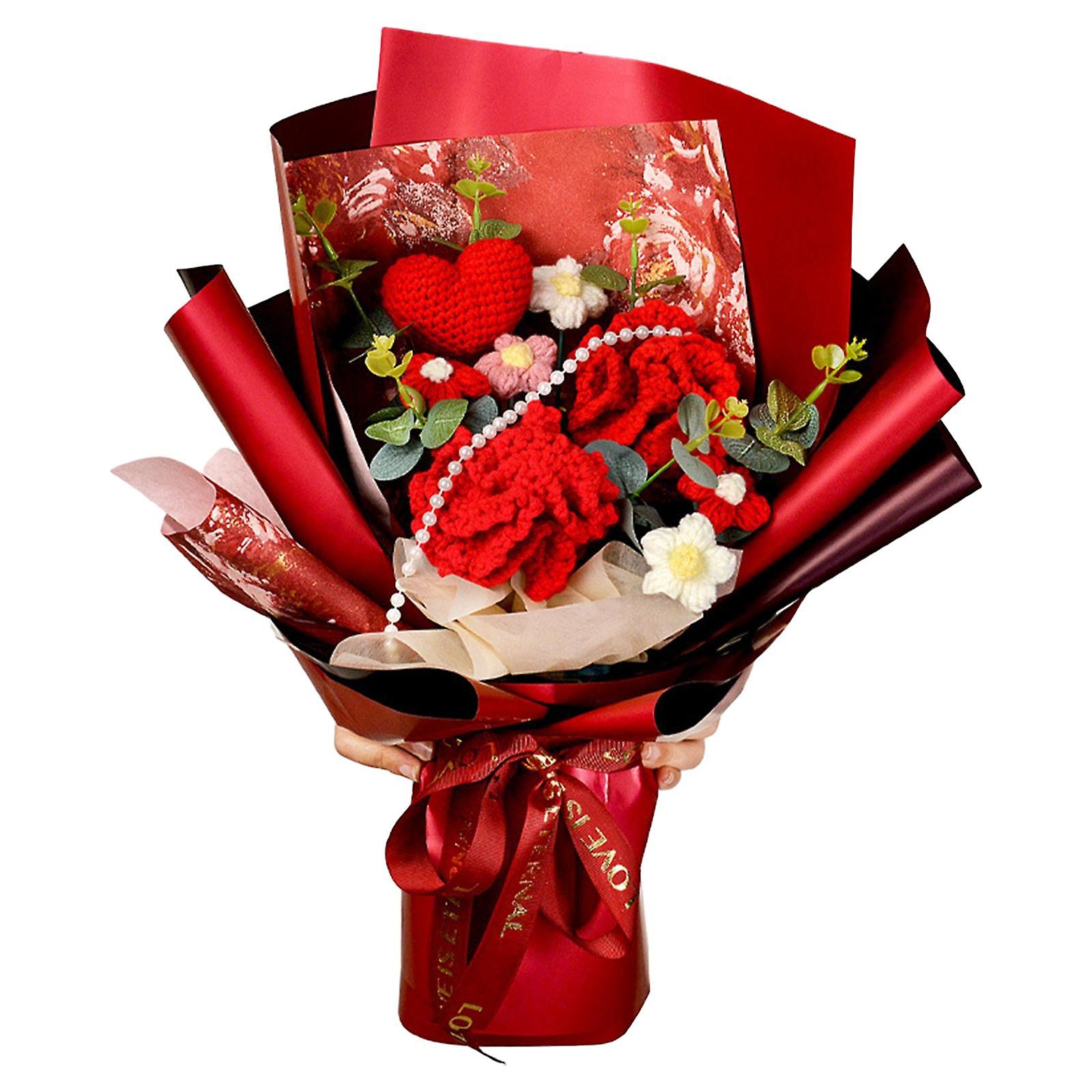 Crochet Carnation Bouquet Hand Woven Bouquet Cute Floral Arrangement Knitted Flowers Home Decor for Mothers Day Gift Festival