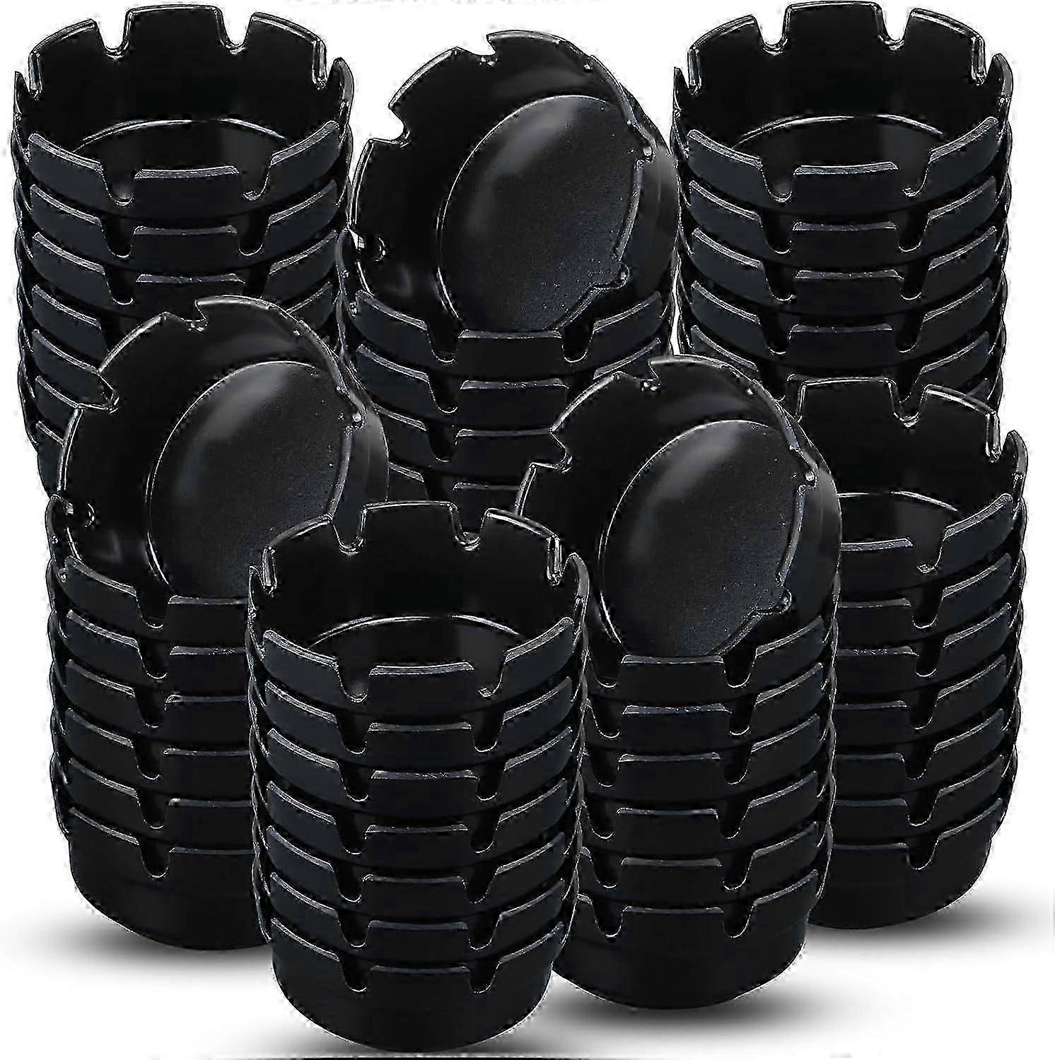 Bulk Pack of 48 Round Black Plastic Cigar Ashtrays - Disposable Ash Tray Set for Restaurant Bar Home Use