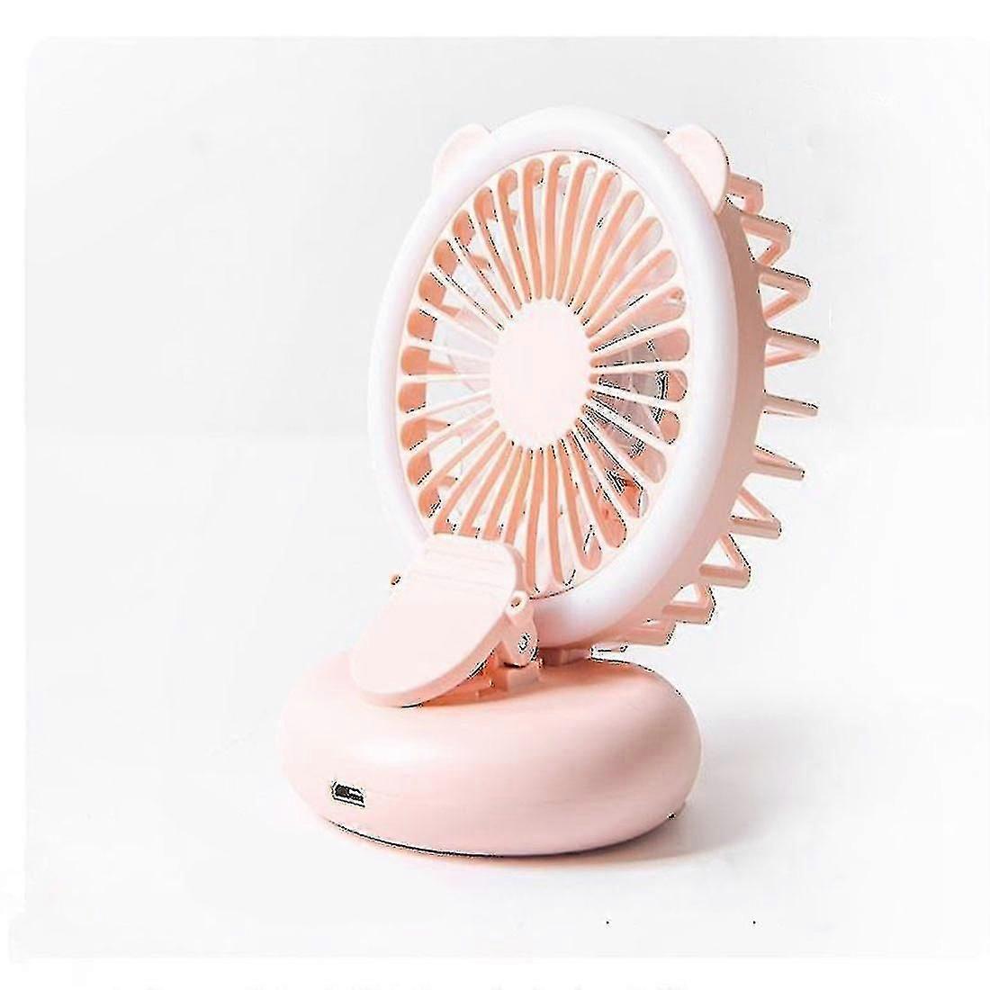 1 Pack Handheld Mini Fan With Selfie Ring Light, Portable Usb Rechargeable Small Pocket Fan, 3-speed Battery Operated Clip Fan Folding Desktop, Flashl