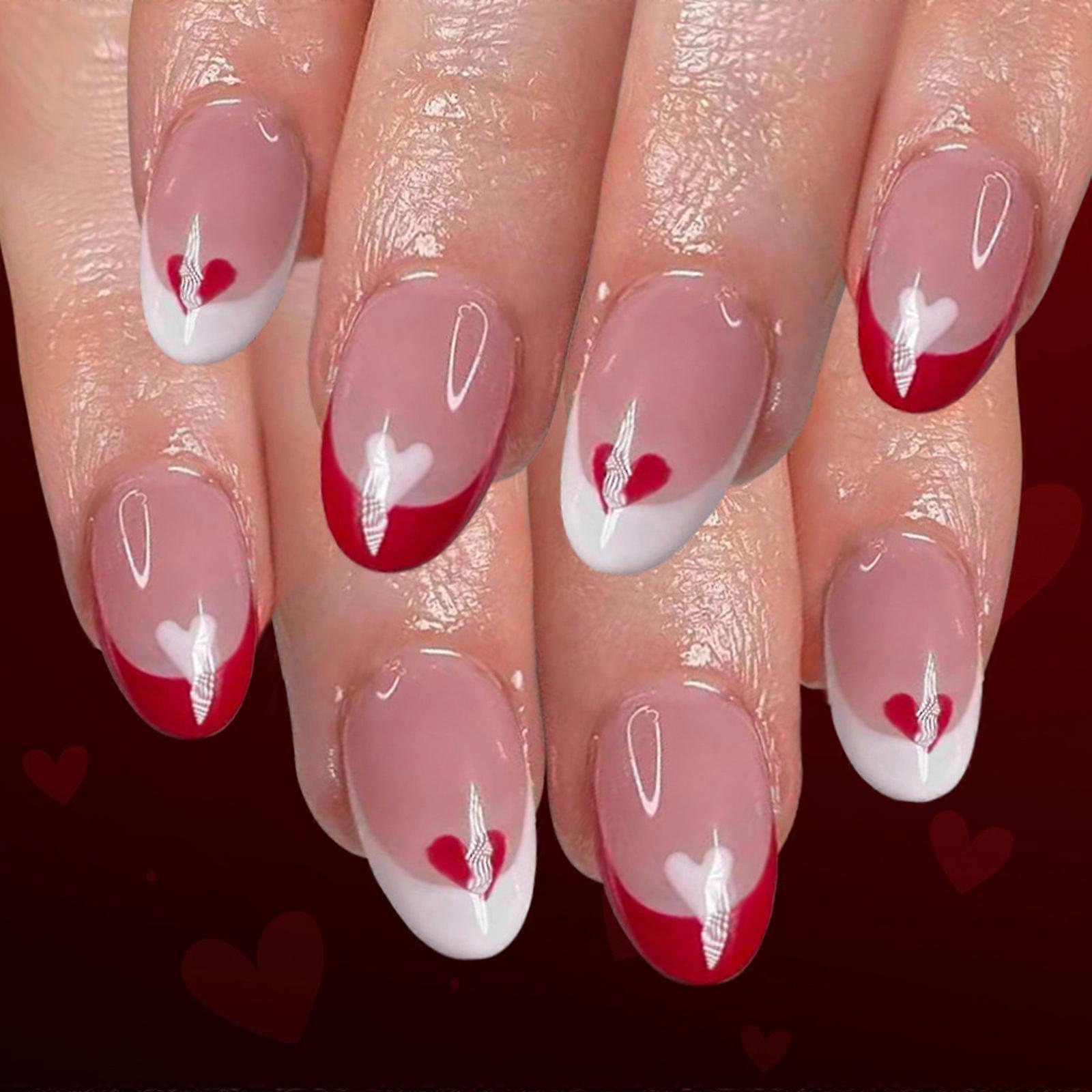Pack of 24 Glittering Heart French Tip Artificial Nail Red and White Valentine Press on Nail Easy Application Comfort Multicolor
