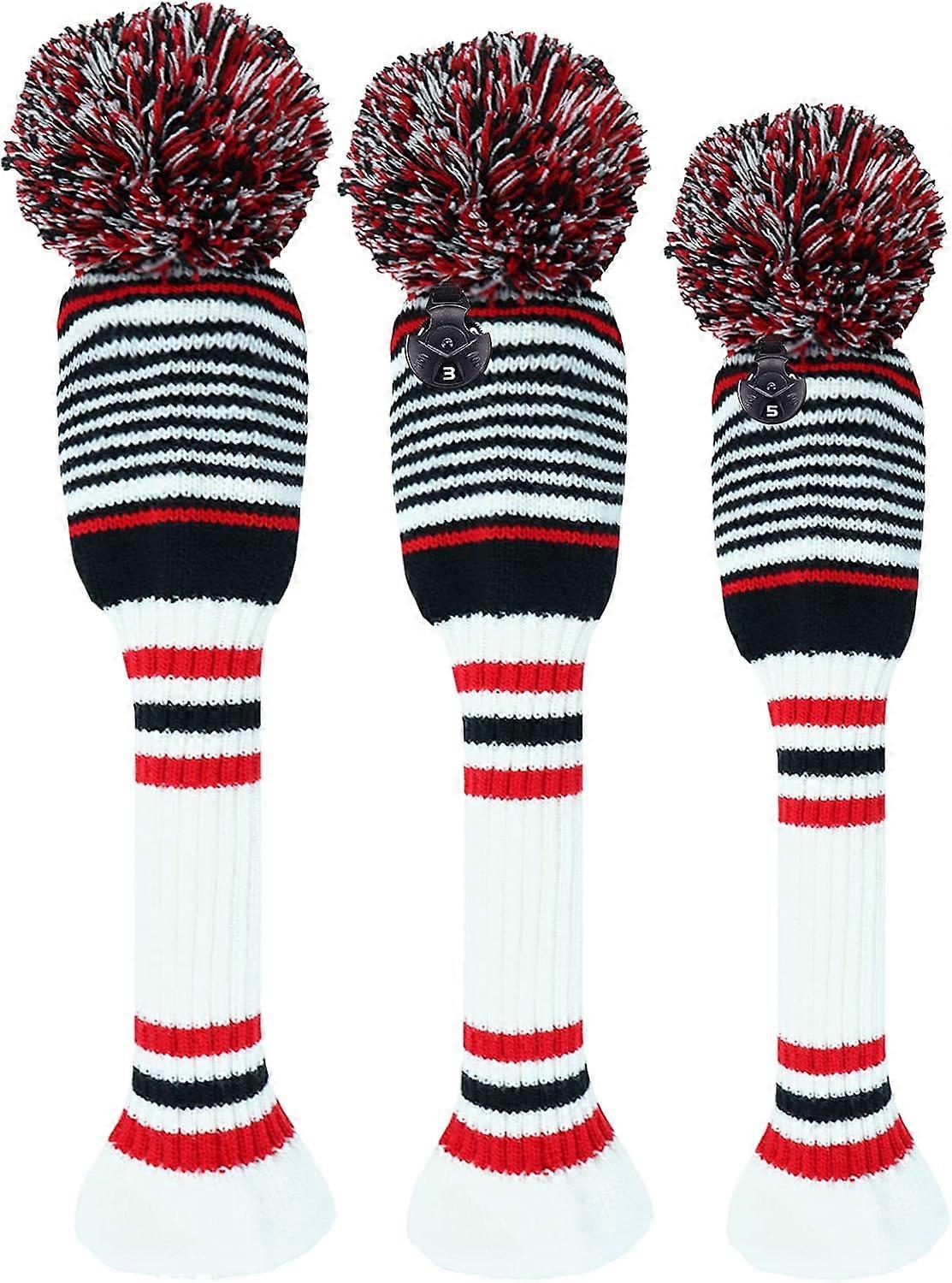 3 Pack Pom Golf Head Covers for Woods 1 3 5 Driver Fairway Hybrids, with Number Tag ,Knitted Golf Head Covers, White 135