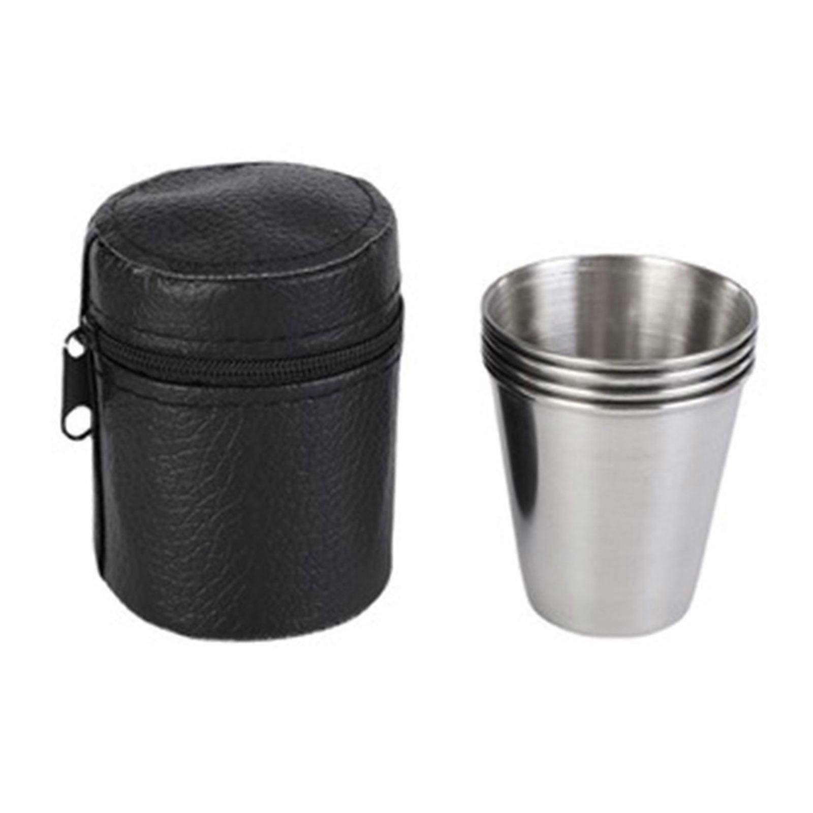 Pack of 4 Compact Camping Cups Mini Wine Mugs with Leather Case Stackable Drinking Cups Suitable for Outdoor Activities Multicolor