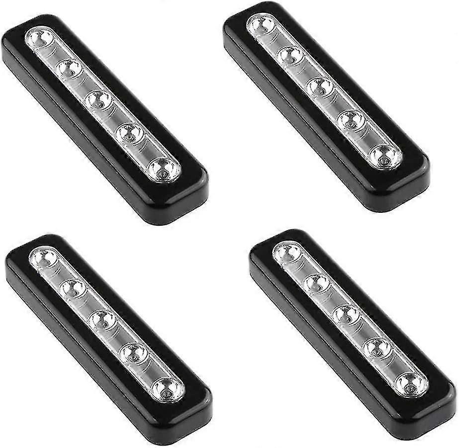Pack Of 4, Diy Stick On 5 Led Touch Tap Lights Battery Powered Push Night Light For Closets, Cabinets, Cupboard, Hallway, Stairs, Attics, Garages, Ca
