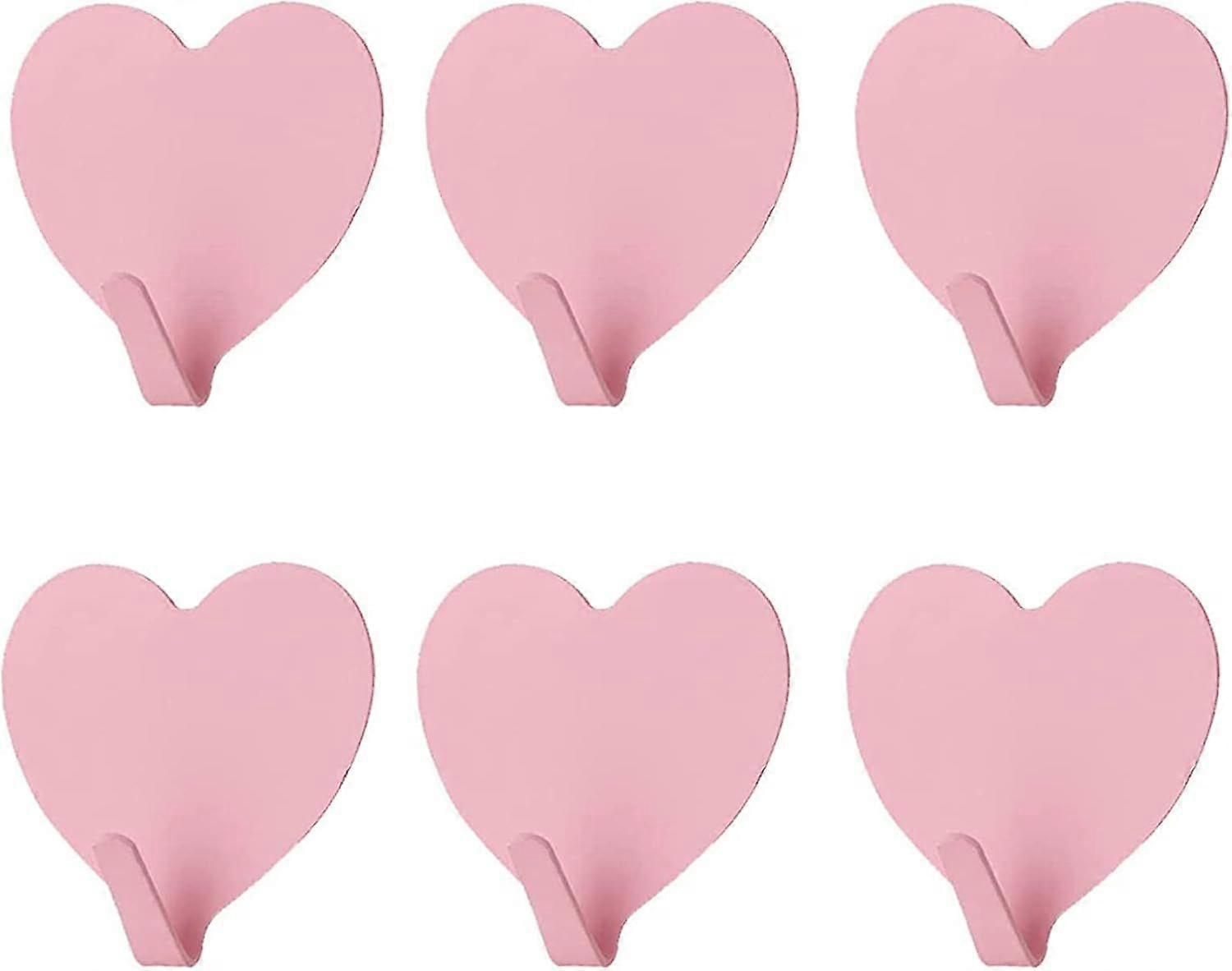 6-Pack Heart-Shaped Decorative Wall Hooks, Stainless Steel Strong Adhesive Hooks - Suitable for Home Kitchen, Bathroom & Office (Light Pink)