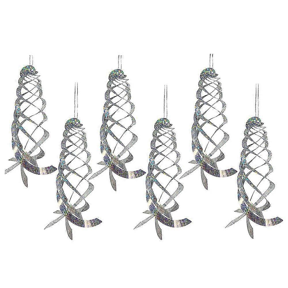 6 Pack Bird Repellent Spiral Reflectors Silver Mylar Spinner, Hanging Reflective Bird Deterrent Device Garden Decorative
