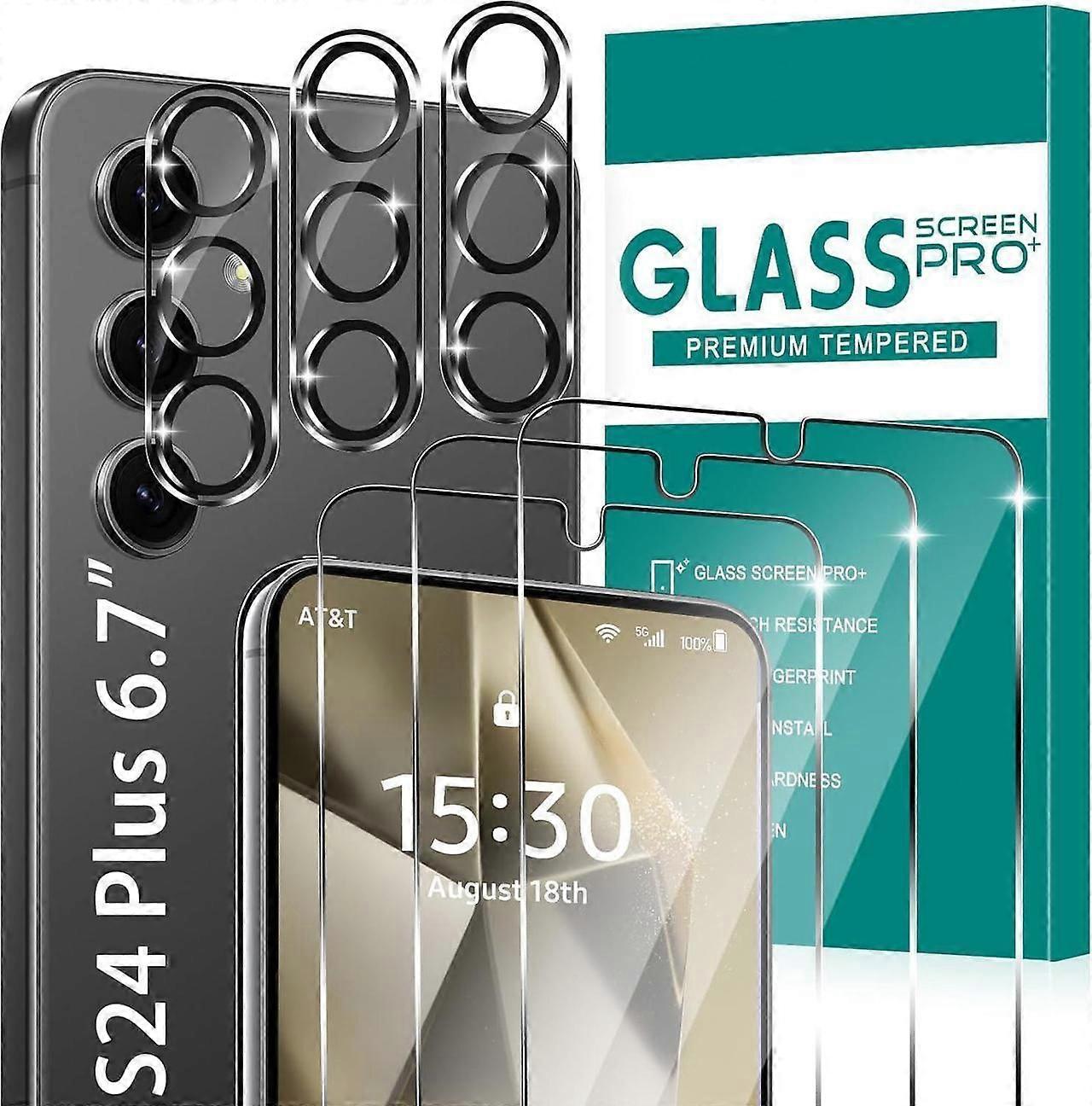 [3+3 Pack] Glass Screen Protector for Samsung Galaxy S24 Plus with Camera Lens Protector, 3D Curved, 6.7 inch 9H Tempered Glass for Samsung Galaxy S24