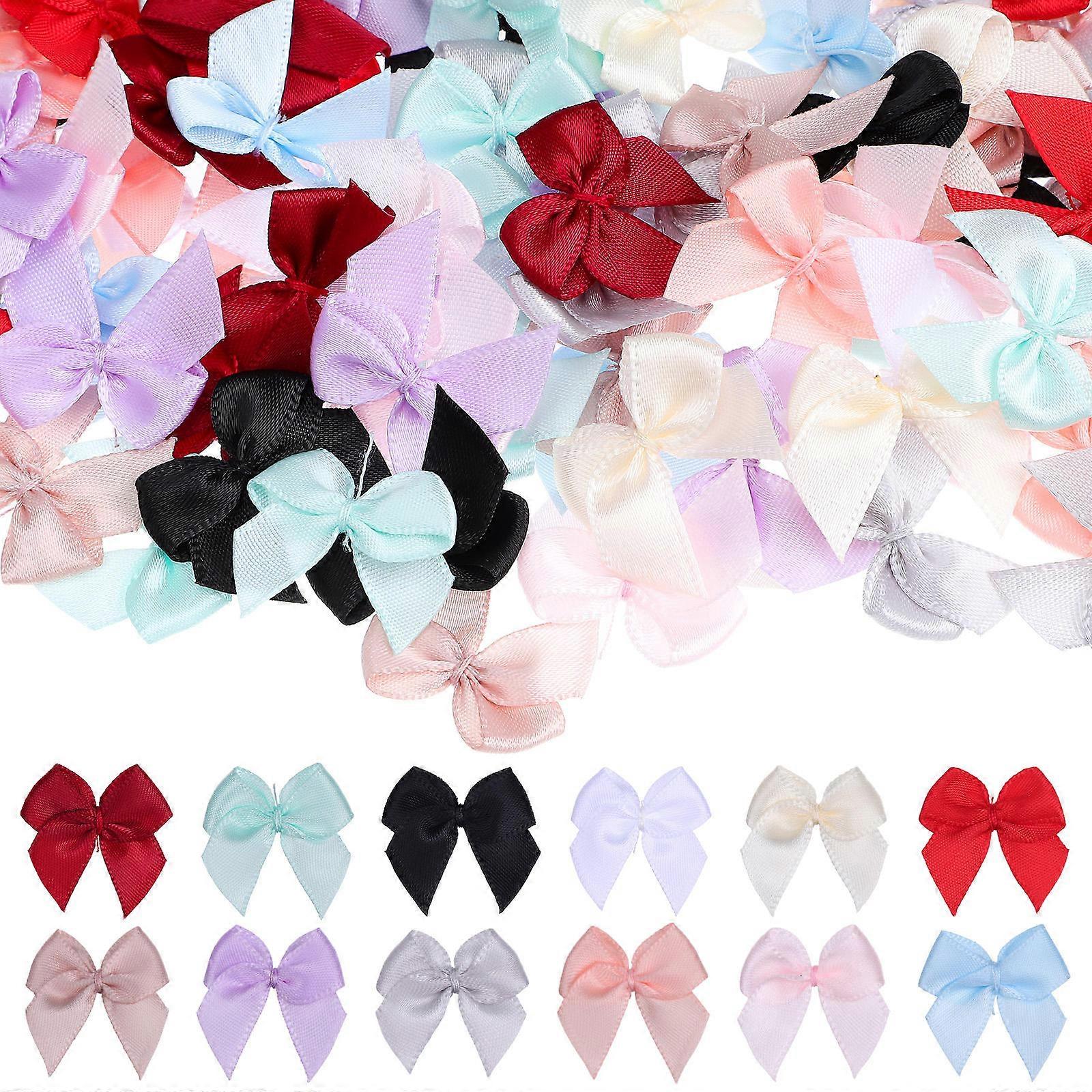 Mini Satin Bows Pack of 180 – Tiny Bow Applique for Sewing, Scrapbooking, DIY Crafts, Hair Accessories, Clothing Embellishments, Packaging Decor
