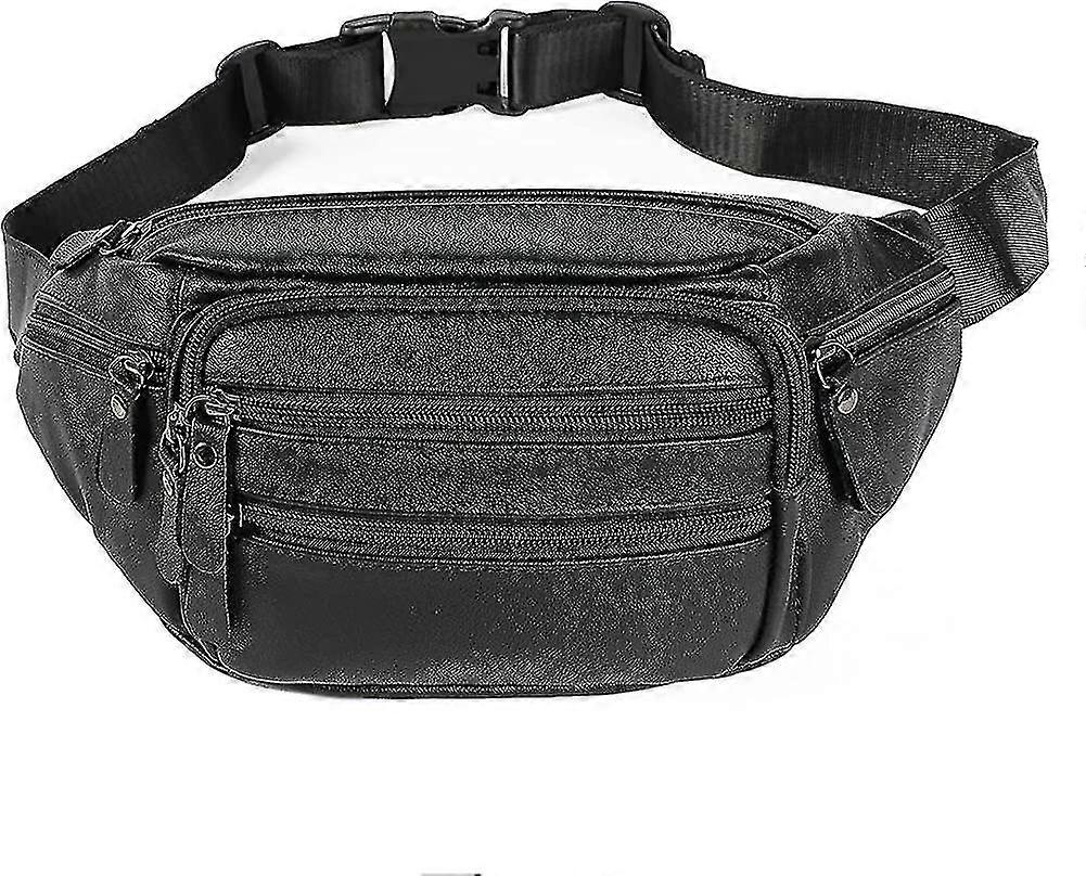 Leather Fanny Pack For Women Men, Genuine Waist Bag For Hiking Travel Running - Black