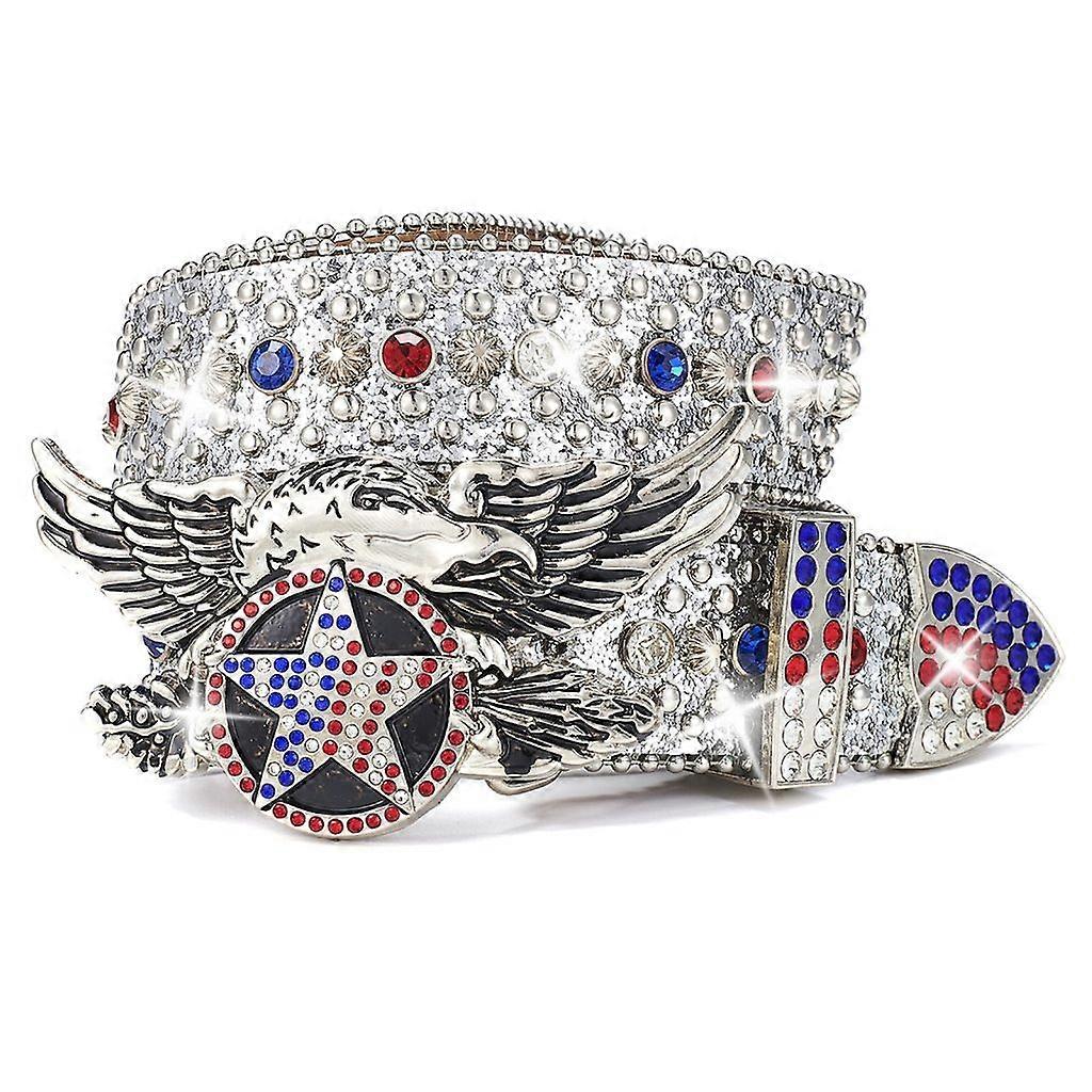 Punk Crystal Studded Belt Sequined PU Leather Belt for Casual and Formal Party
