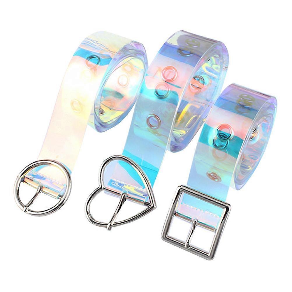Jeans Belts For Women 3Pcs Iridescent PU Waist Belt Assorted Color Sturdy Heart Shape Buckle Special Occasion