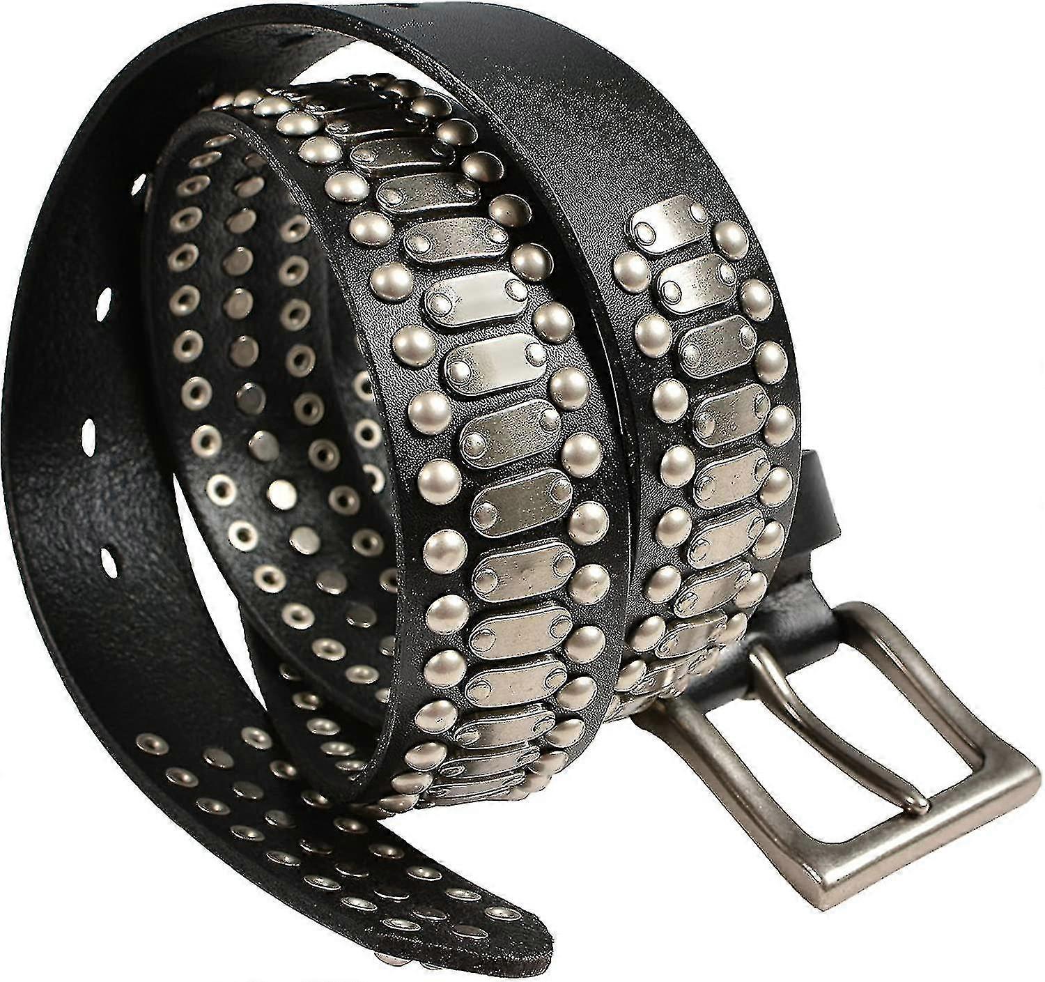 Stylish Mens Studded Casual Italian Cowhide Leather Belts For Jeans Punk Rock Rivets Belt With Buckle For Men Black
