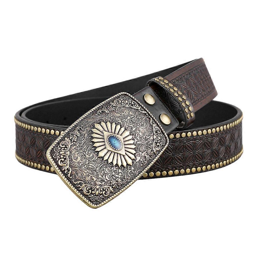 Features: Crafted from PU leathers, our belt is not only stylish but also long lasting. The rivet decoration and floral engraving make it a unique choice for fashion enthusiasts. Perfect for jeans and casual wear, this durable and comfortable belt is a must have. The adjustable length ensures a perfect fit for different waist sizes. Its simple design makes it suitable for both men and women. Elagant and attractive,suitable for men,women, boys or girls, easy to pair with any jeans, streetwear, outdoor golf Etc. This vintage leather belt is a fantastic gift for your dad,boyfriend,brother,husband. Specifications: Material:PU Leathers Length:Approx.110cm/43.31'',120cm/47.24'',130cm/51.18'' Note: Please allow 1mm errors due to manual measurement. Due to the difference between different monitors, the picture may not reflect the actual color of the item. Package includes: 1x Men Buckle Belt