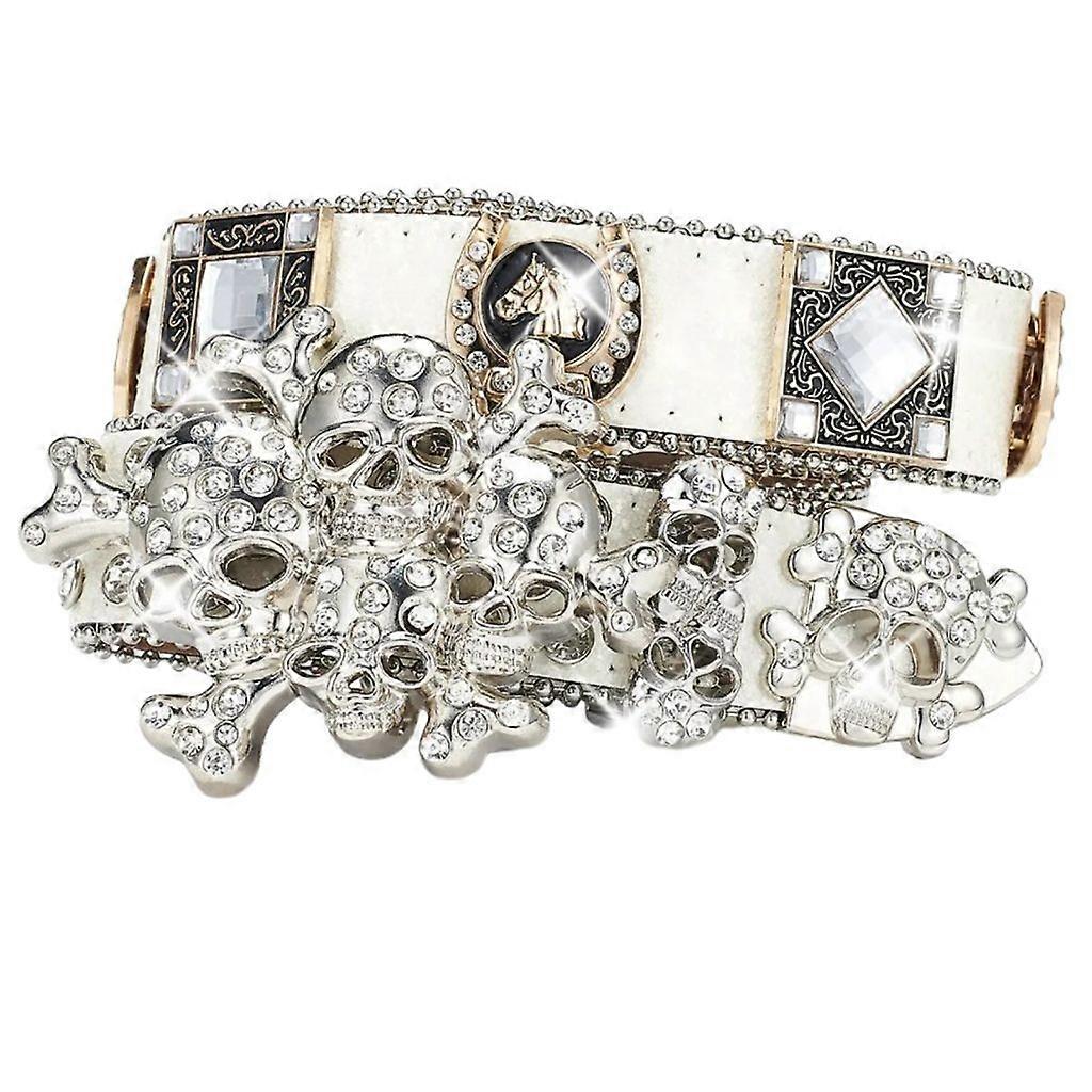 Vintage Crystal Studded Belt Western Skull Buckle Waistband Street Dance Belt