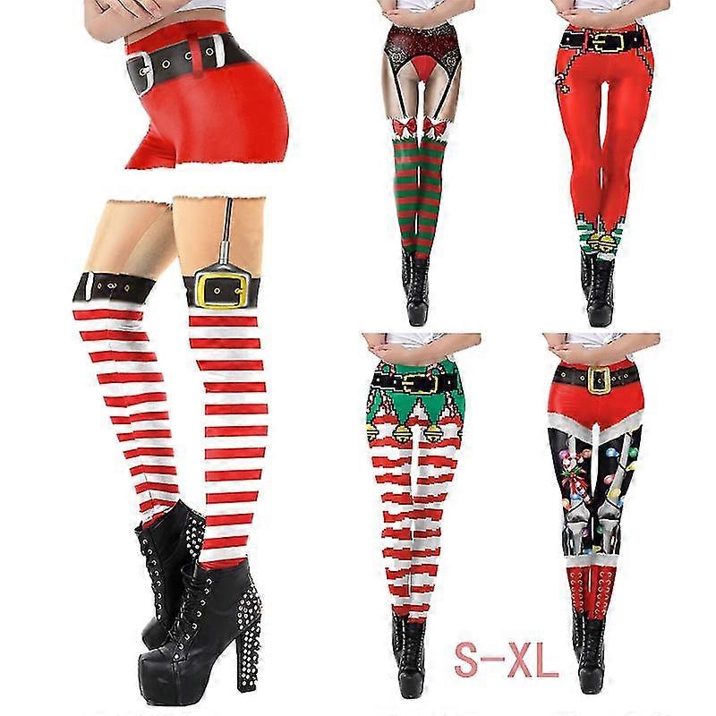 Christmas Belt Leggings Gift Autumn Winter Festival Legging Women 3d Stripe Sexy High Waist Skinny Leggins