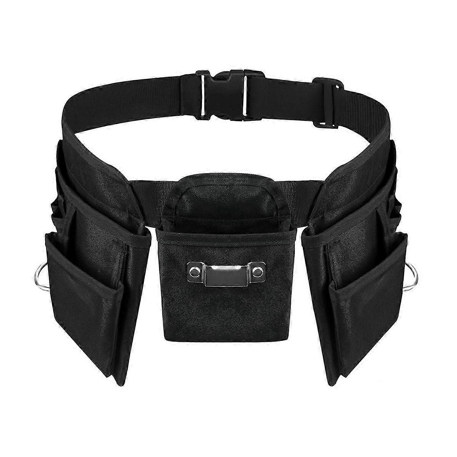 [Multi-function Pocket Tool Belt]Our utility tool belt has 19 pockets for storing tools, and is also designed with a tape measure holder and two steel rings for hanging hammers. Ample storage space can hold a variety of nails, screwdrivers, hammers, tape measures, etc. One tool belt can meet all your work needs. [Top Quality]Our heavy-duty tool belt is made of tear-resistant Oxford cloth, stainless steel metal parts and reinforced rivets. Strong and durable, not easy to rust. [Adjustable and Detachable]The electrician tool belt has an extra-long adjustable shoulder strap and a quick-release buckle, suitable for waist circumferences of 30 inches - 47 inches. The perfect size design makes this tool belt suitable for all men and women. [Wide Application]This heavy-duty work belt is suitable for construction workers, contractors, carpenters, gardeners, framers, plumbers, electricians, etc. Help you complete your work more efficiently and easily.<br><br>Colour:Black Material:Oxford cloth<br><br>Package Contents: 1 x Multifunctional storage and maintenance bag<br><br>Only the above package content, other products are not included. Note: Light reflection and different displays may cause the color of the item in the picture a little different from the real thing. The measurement allowed error is +/- 1-3cm.