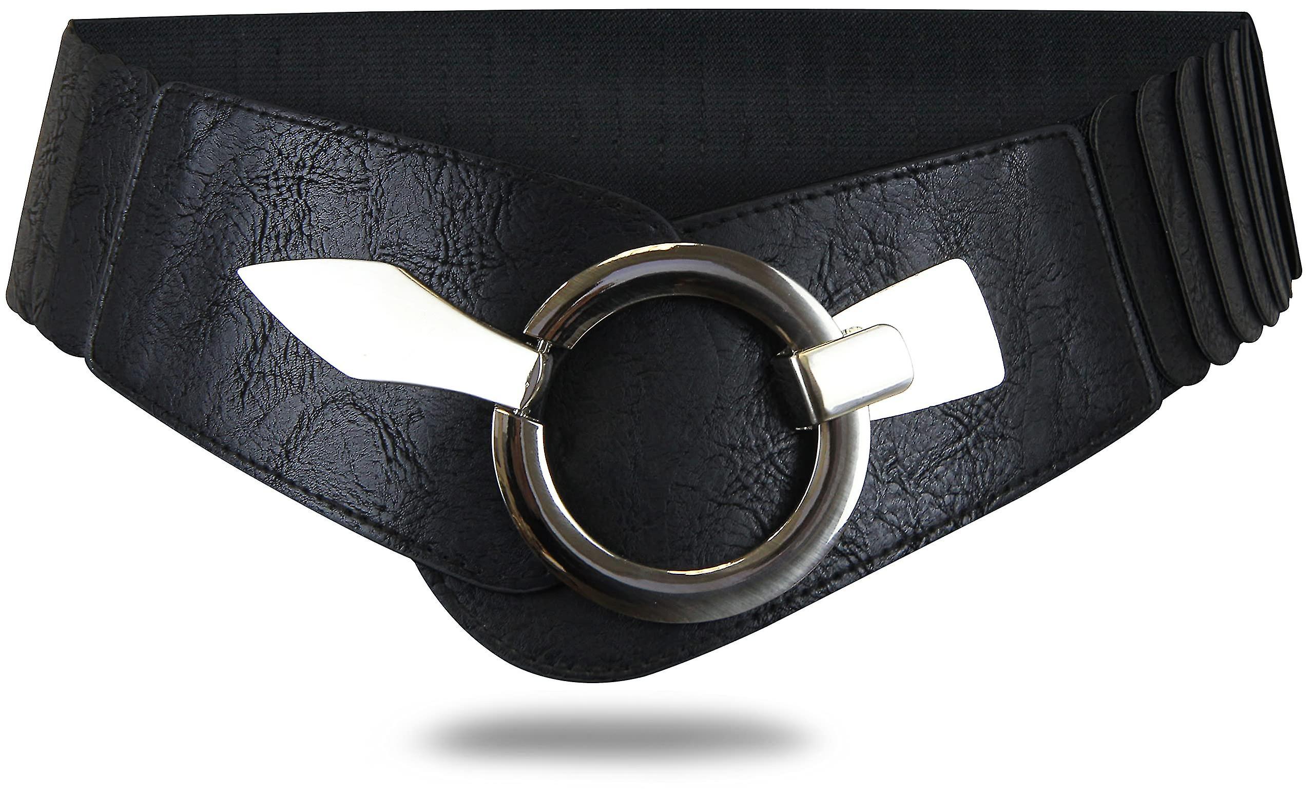 Elastic Women's Waist Belt, Approx. 6 Cm Wide Hip Belt With Silver Ring Clasp, Stretch Belt