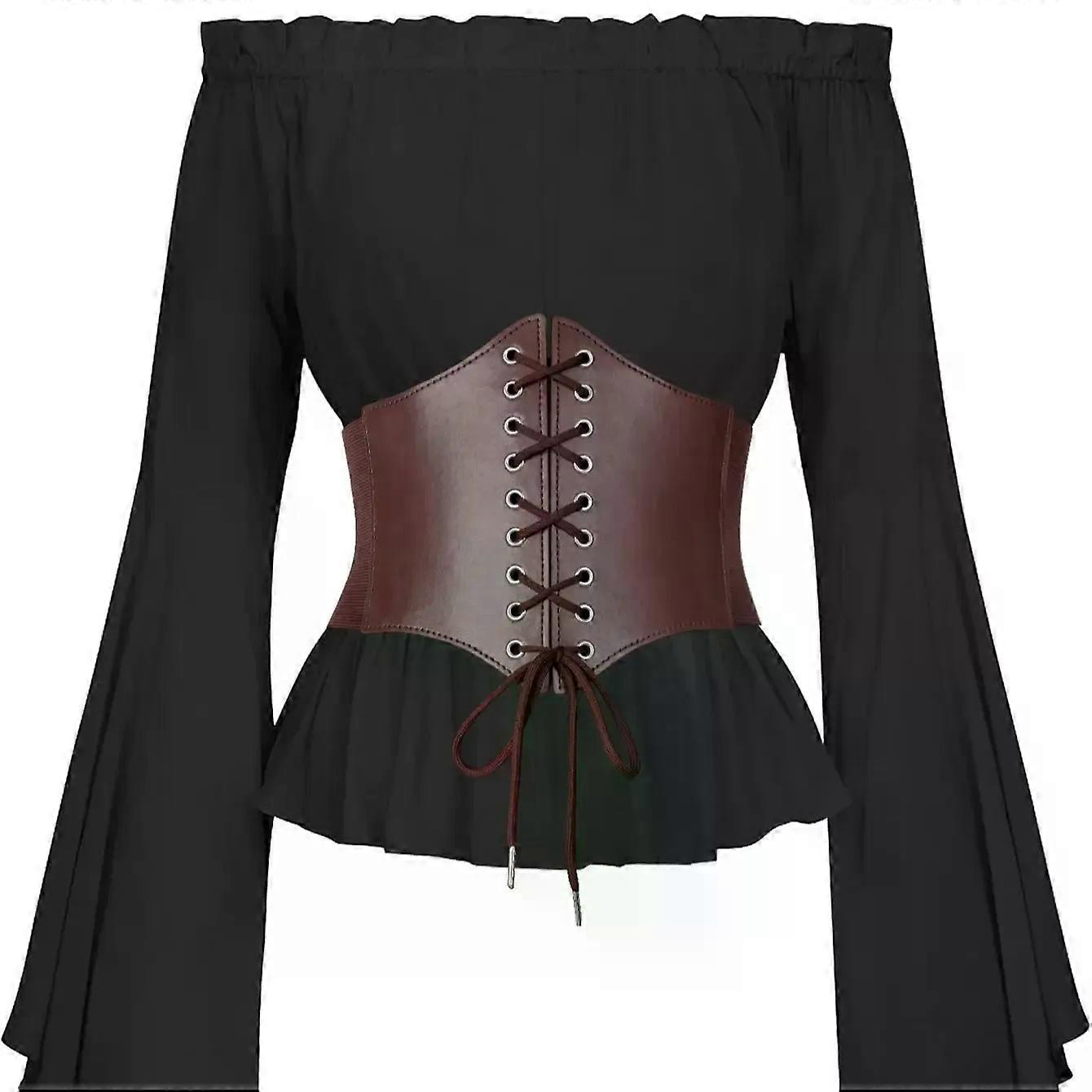 Medieval Waist Belt Brown Elastic Bind Belt Trendy Decoration Women Retro Viking Renaissance Dress Accessory For Cosplay Prop