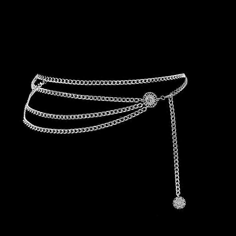 Elegant Round Metal Belt For Women Retro Gold Silver Carved Hollow Out Chain Long Belts Fashion Dress Decorative Lady Waistband