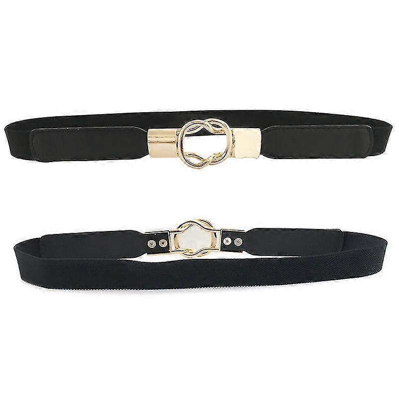 Women Belt Elastic Skinny Thin Waist Dress Waistband Gold Metal Buckle